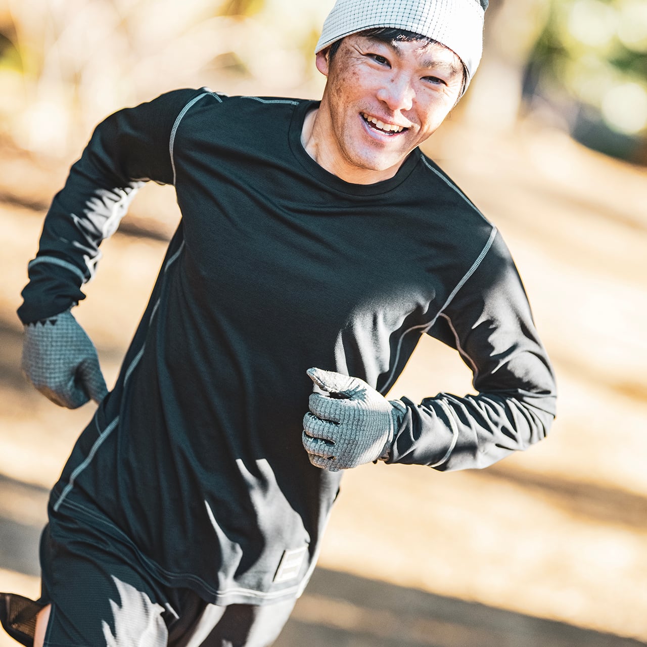 トレイルランニングの魅力をYouTubeで発信するガチオさん。熱く楽しくトレイルランニングに向かう姿に多くのトレイルランナーが共感。そのガチオさんとのコラボレーションは、レース体験に基づき開発した「MASTER THE RACE(レースの達人)」コレクション。一枚でもベースレイヤーとしてもマルチに使える速乾機能のロングTシャツ。