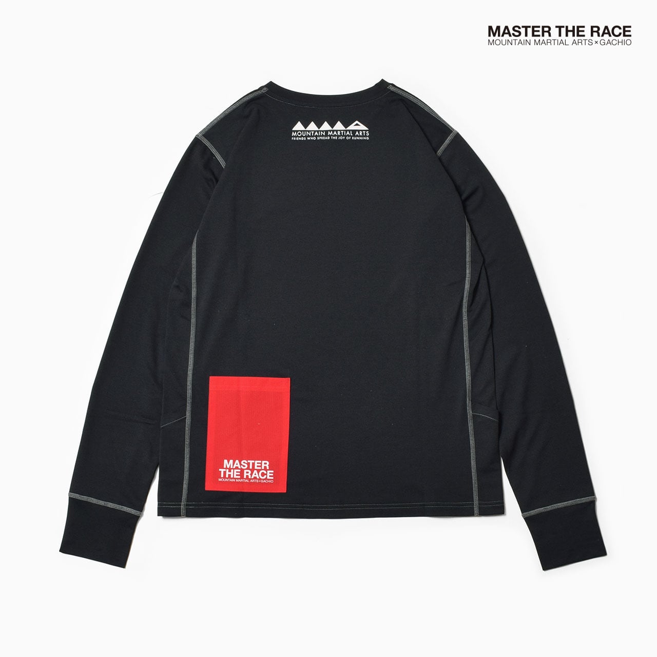 日本製のオリジナルボディは、アクティビティに適した動きやすいシルエット。脇のガゼットにより立体的な構造で、フラットな縫い目と合わせて動きやすく快適な着心地。ガゼット下部には補給などが入るポケットを装備。袖はサムホール仕様。背中のマルチポケットには「MASTER THE RACE」のプリント。