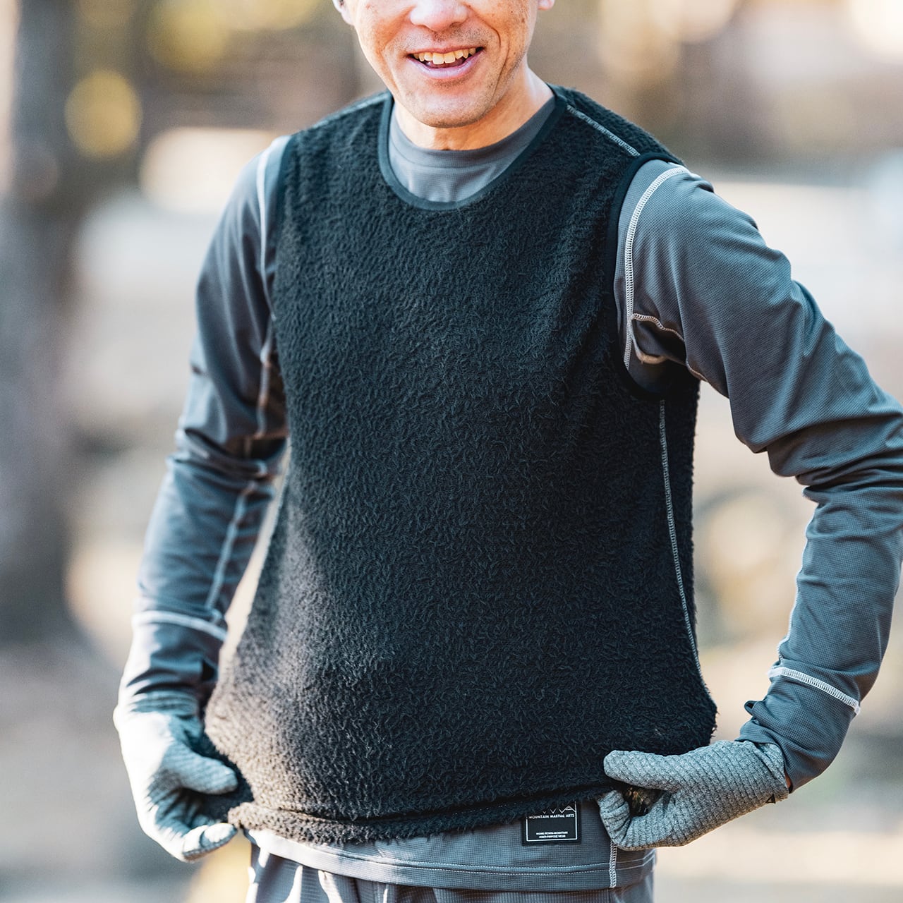 トレイルランニングの魅力をYouTubeで発信するガチオさん。熱く楽しくトレイルランニングに向かう姿に多くのトレイルランナーが共感。そのガチオさんとのコラボレーションは、レース体験に基づき開発した「MASTER THE RACE(レースの達人)」コレクション。肌寒い時にさっと着用できる「POLARTEC® Alpha Direct」のベスト。